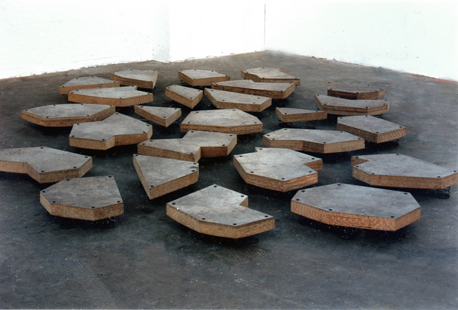 bodenlos, 1981/91, begehbare Rauminstallation, Karton, Metall