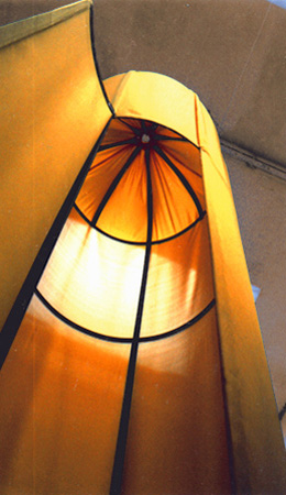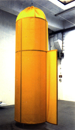 Gelber Raum, 1993, begehbarer hängender Raum, 100 x 400 x 100 cm, Metall, Stoff